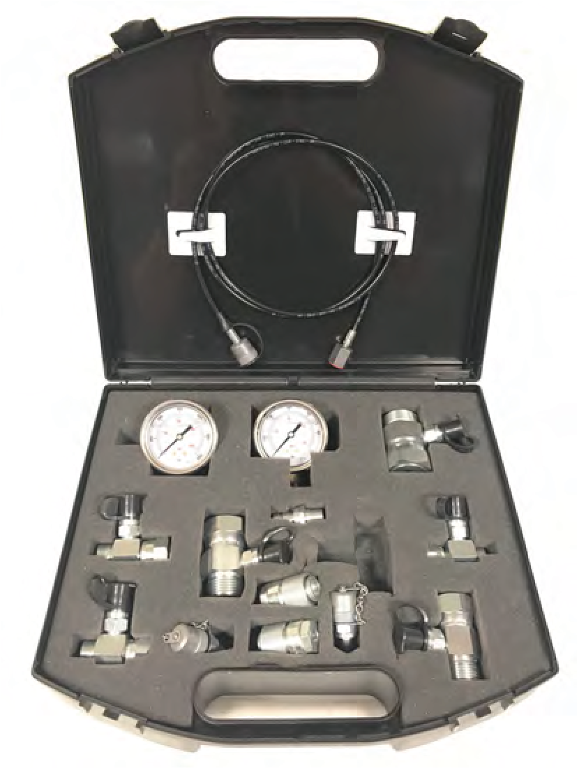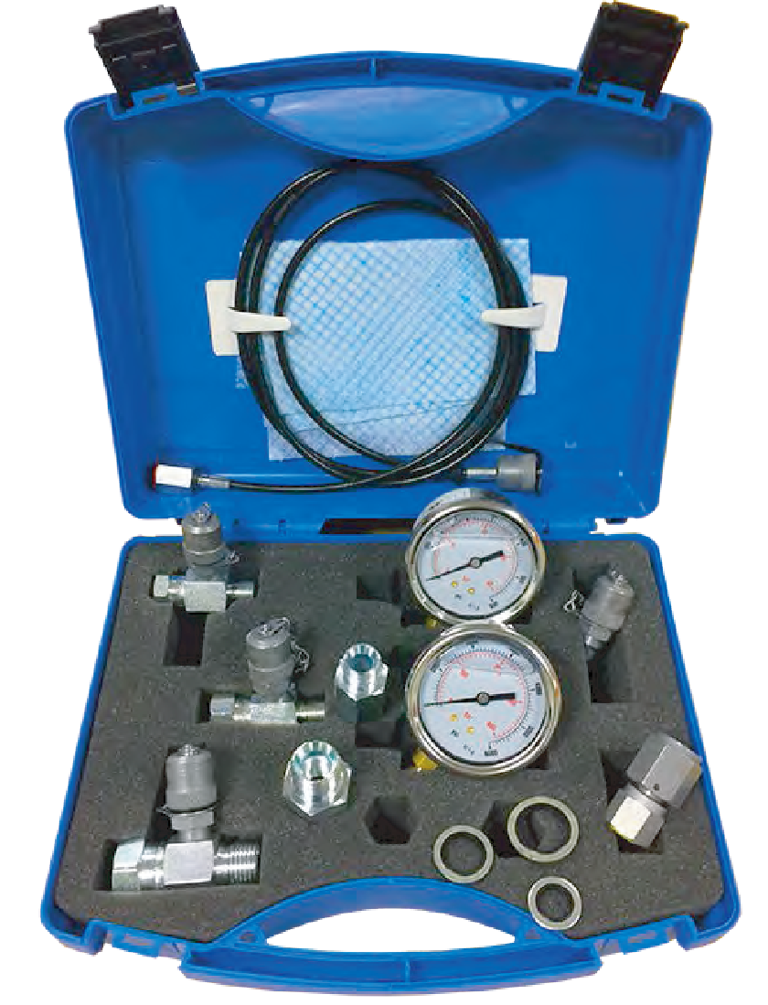 Hydrotechnik社は、多種多様なユーザーと接続ねじのバリエーションに対応する幅広い油圧テストキットを提供しています。各キットには、テストポイントの用途に適したアナログ圧力ゲージと殆どの油圧機器やシステムに適合するように用意された変換アダプターなど必要なアイテムが全て含まれています。それらに加えてこれらのキットには、漏れ保証付きで設計された、圧力計接続用のミニメステストポイントが付属されております。